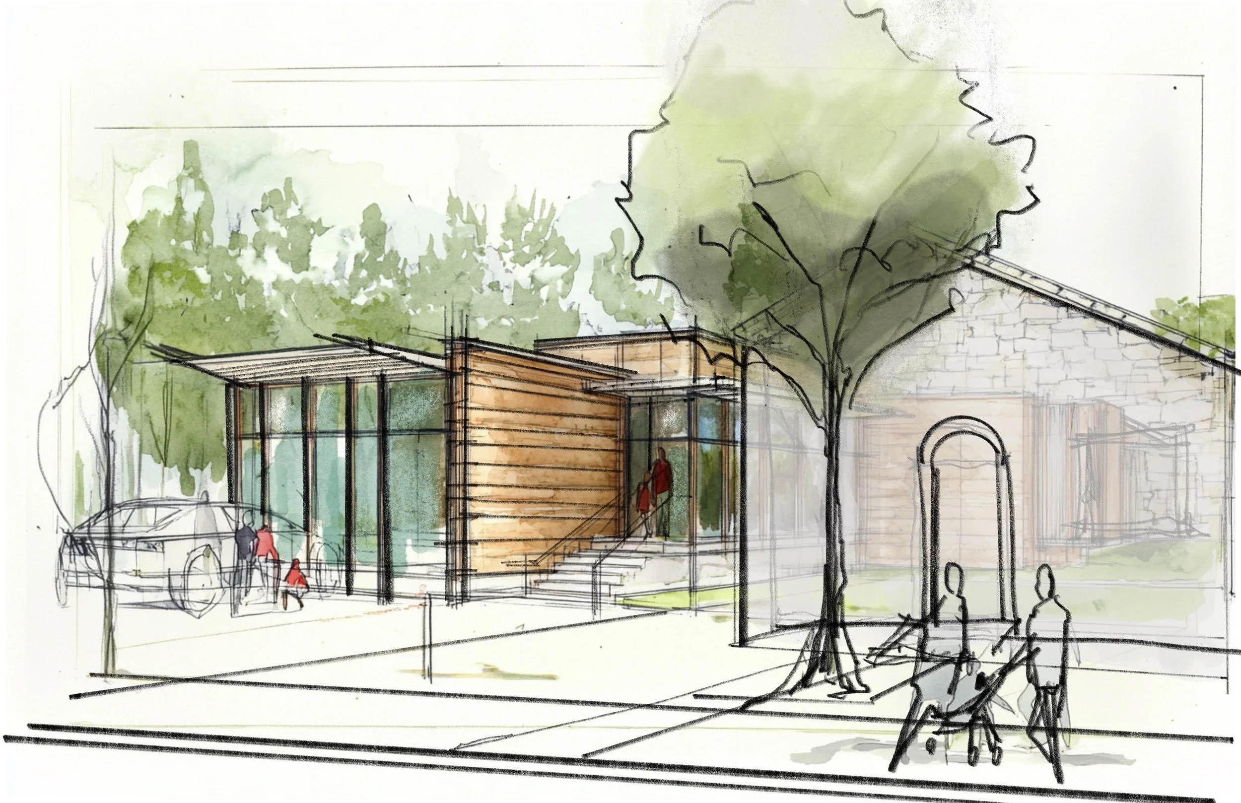 Early in the process, a site study was conducted to confirm zoning and setback requirements and to determine the feasibility of an accessory dwelling on the property. These constraints informed a design strategy inspired by the mechanics of a telescope—one that widens as it extends away from the existing residence.